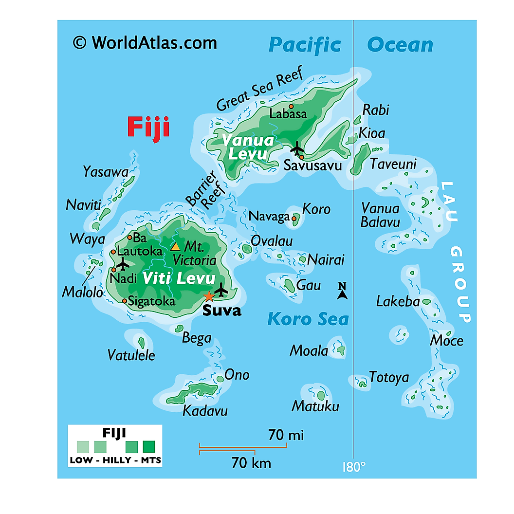 The landscape is dominated by rugged mountains, rainforests, and coastal plains. Fiji is also renowned for its coral reefs, which are among the most diverse in the world. These marine ecosystems, along with Fiji’s pristine beaches and clear lagoons, are vital to the nation’s tourism industry and biodiversity.